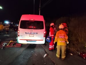 Los vehículos implicados son una combi de transporte público, mientras que los otros dos autos son una camioneta tipo pick up azul, así como una camioneta blanca cerrada.