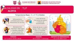 Fue activada la Alerta Roja por pronóstico de temperaturas bajas para la madrugada y mañana de hoy miércoles 31 de diciembre para la demarcación Tlalpan en la Ciudad de México.