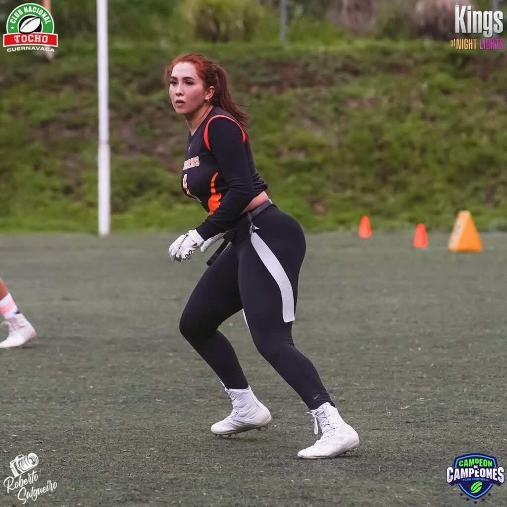 Con tan solo 27 años, esta belleza de mujer estremece las diversas con su colosal figura, pues además de ser una apasionada del gimnasio, también es toda una estrella del tochito bandera, donde no sólo anota en el terreno, sino en el corazón de sus fans.