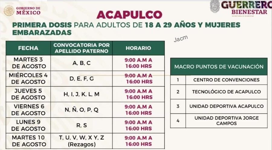 Como respuesta al incremento en el número de personas contagiadas de COVID-19, el Gobernador del Estado de Guerrero, Héctor Astudillo, anunció el día de hoy que a partir del próximo martes 03 de Agosto iniciará la jornada de vacunación para jóvenes de 18 a 29 años, esperando que de ésta forma se pueda combatir el creciente número de nuevos contagios, pues menciono que hoy jueves se rompió el récord en 24 horas con más de 700 positivos en la entidad.