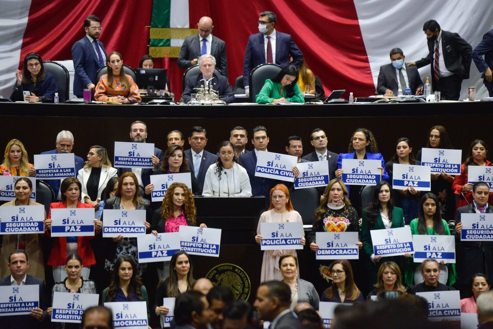 La discusión en el Pleno de la Cámara de Diputados para extender hasta el 2028 el acompañamiento del Ejército en las labores de seguridad pública, se dio en medio de protestas de la oposición y el apoyo de los que estuvieron a favor de la iniciativa.