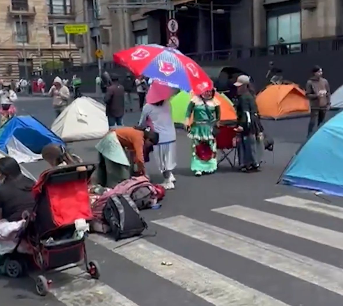 Un basto grupo de Artesanos indígenas del Estado de México realizan un bloqueo en Eje Central Lázaro Cárdenas, frente al Palacio de Bellas Artes en la Ciudad de México, denunciando abuso por parte de autoridades.