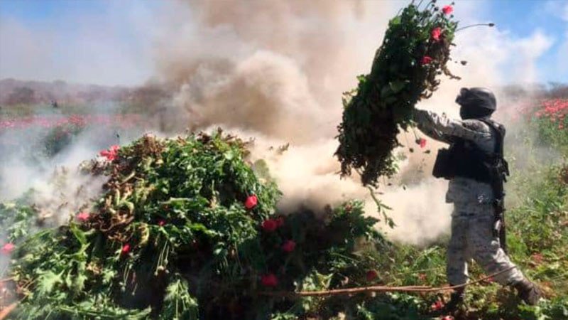 Agentes de la Sedena y la Guardia Nacional procedieron a la destrucción de las plantas mediante su incineración.