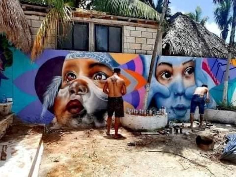 Junto con el colectivo “Pinta o Muere”, Dizer dejó su huella en más de una decena de murales en la Riviera Maya, así como en las comunidades mayas de  Hondzonot y Chunhuhub.