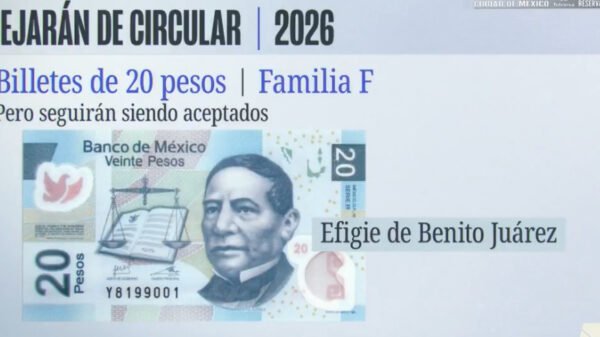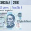 A partir del 2026 dejarán de circular los billetes de veinte pesos, pertenecientes a la familia F, característicos por la efigie de Benito Juárez,...