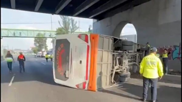 Cinco pasajeros resultaron heridos luego que el camión de transporte público en el que viajaban se volteó cuando circulaban sobre la Calzada Ignacio Zaragoza...