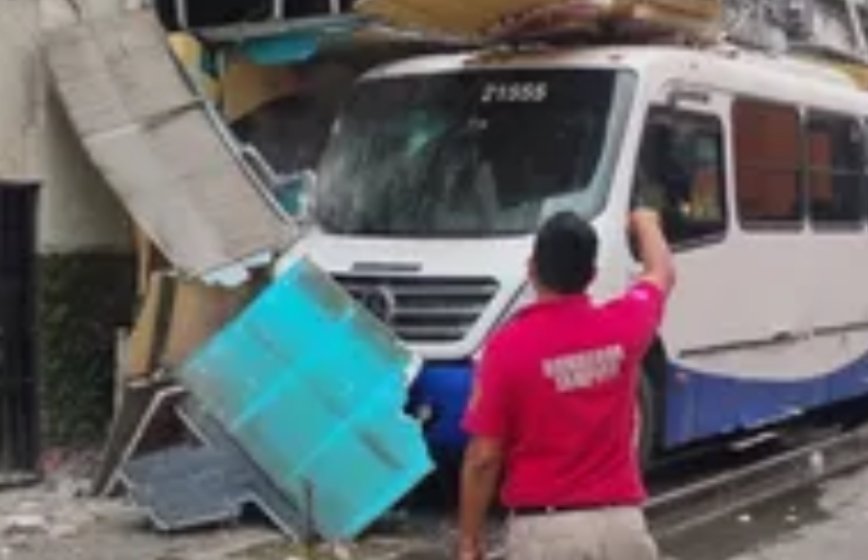 Autobús se impacta contra locales comerciales en el centro de Tampico