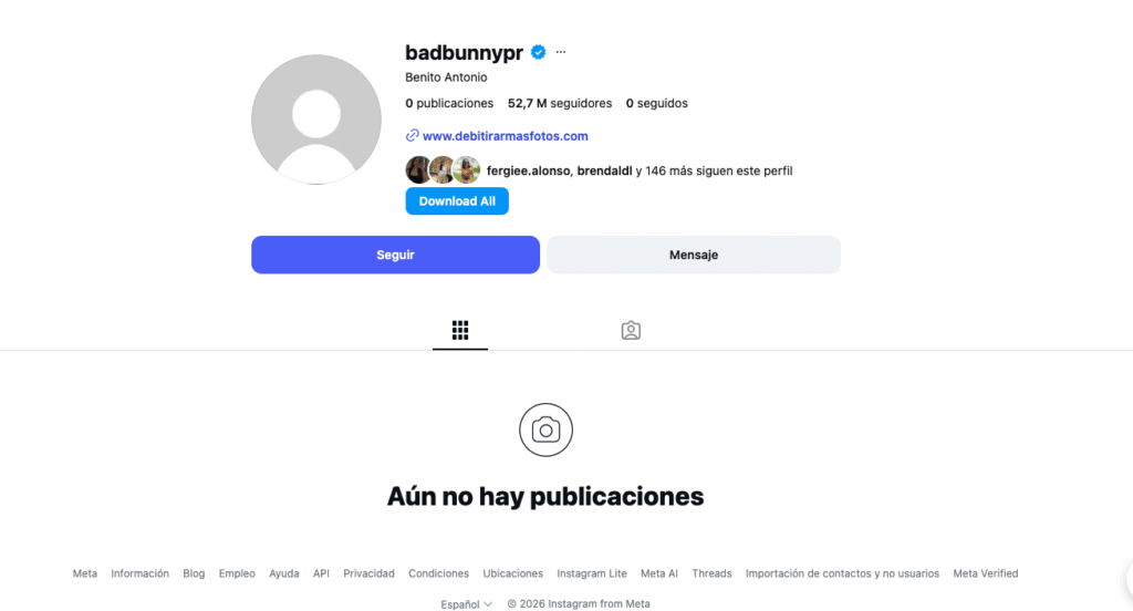 La comunidad musical y digital no ha dejado de hablarlo: Bad Bunny eliminó todas sus publicaciones de Instagram poco después de su actuación en el Super Bowl 2026, dejando su perfil completamente vacío —sin fotos, sin videos, sin foto de perfil y sin seguir a nadie— lo que ha desatado un sinfín de teorías entre fans y analistas.