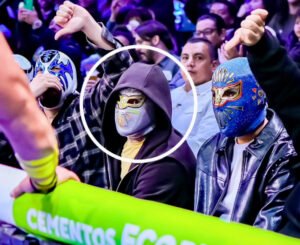 El artista estuvo presente en primera fila de la función en donde usó una máscara de Místico para intentar pasar desapercibido por el público presente en la arena.