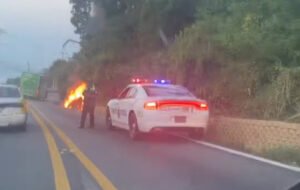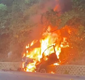 Amigo era que aparentemente viajaba a exceso de velocidad sobre la avenida escénica en el puerto de Acapulco, terminó accidentada e incendiada a orillas de esta importante vía de comunicación.