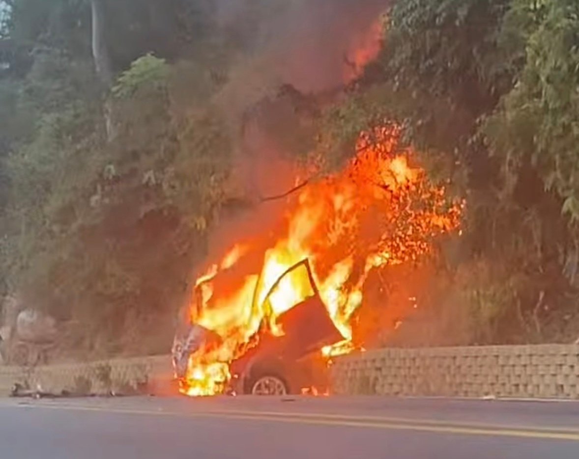 Amigo era que aparentemente viajaba a exceso de velocidad sobre la avenida escénica en el puerto de Acapulco, terminó accidentada e incendiada a orillas de esta importante vía de comunicación.