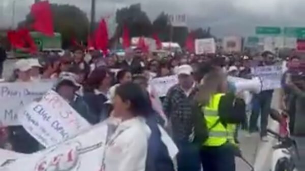 Maestros de la Coordinadora Nacional de Trabajadores de la Educación (CNTE) realizan este miércoles una marcha bloqueo parcial en la caseta de San Marcos...