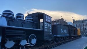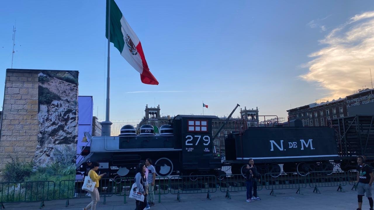 La tarde de este miércoles fue colocada en la explanada principal del Zócalo de la Ciudad de México, una locomotora, aviones y helicópteros que son parte de la exhibición que el Ejército Mexicano presenta como parte del Desfile militar por el 20 de Noviembre a realizarse la mañana de este jueves.