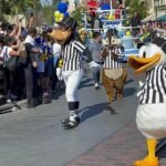 Con el castillo de la Bella Durmiente como fondo los tres jugadores de Los Angeles avanzaron a bordo de un carro alegórico, junto a Mickey Mouse, mientras saludaban a decenas de aficionados que aplaudieron a su paso.