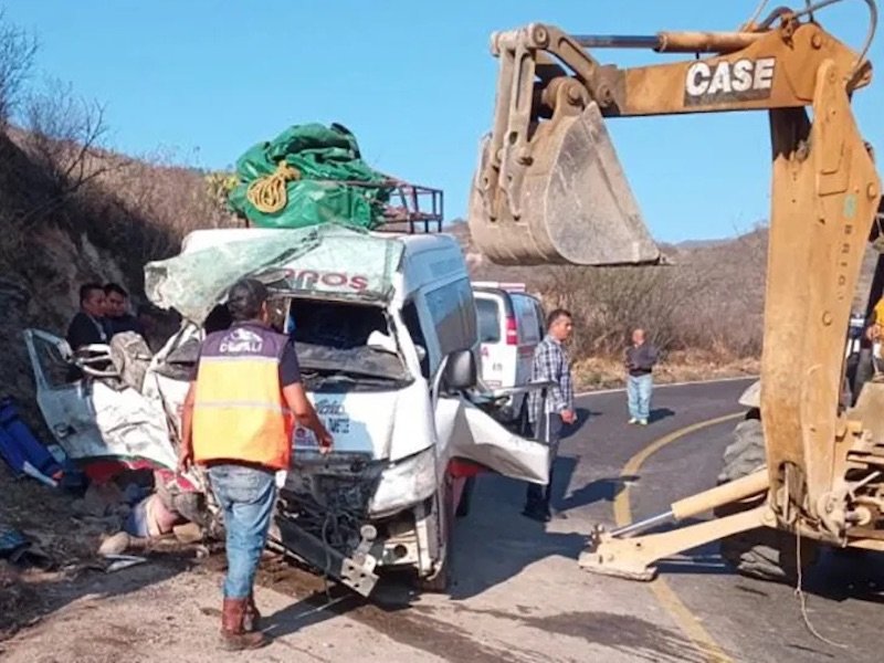 El medio día de este viernes se registró un choque sobre la carretera federal 175 que va a San Pablo Guelatao en el estado de Oaxaca, que dejó cuatro personas muertas y por lo menos 10 lesionados, esto al impactarse una camioneta de pasajeros contra un cerro al costado del camino.