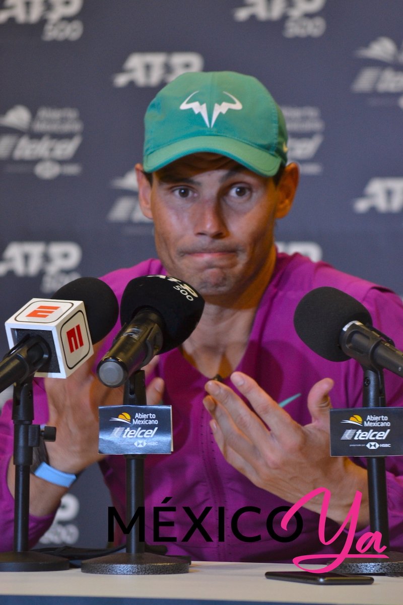 El tenista y multicampeón Rafael Nadal, tuvo su juego debut en el Abierto Mexicano de Tenis ente el estadounidense número 100 del mundo, Kudla Denis, al que venció cómodamente. Minutos después de terminar su juego, el español Rafa Nadal tuvo una charla con medios de comunicación locales y nacionales, pudiendo constar un detalle sobre el tenista, tiene la facilidad de comunicarse sin tener que hablar, es muy expresivo y con solo una mirada parecía contestar cada una de la preguntas que algunos reporteros le hicieron.