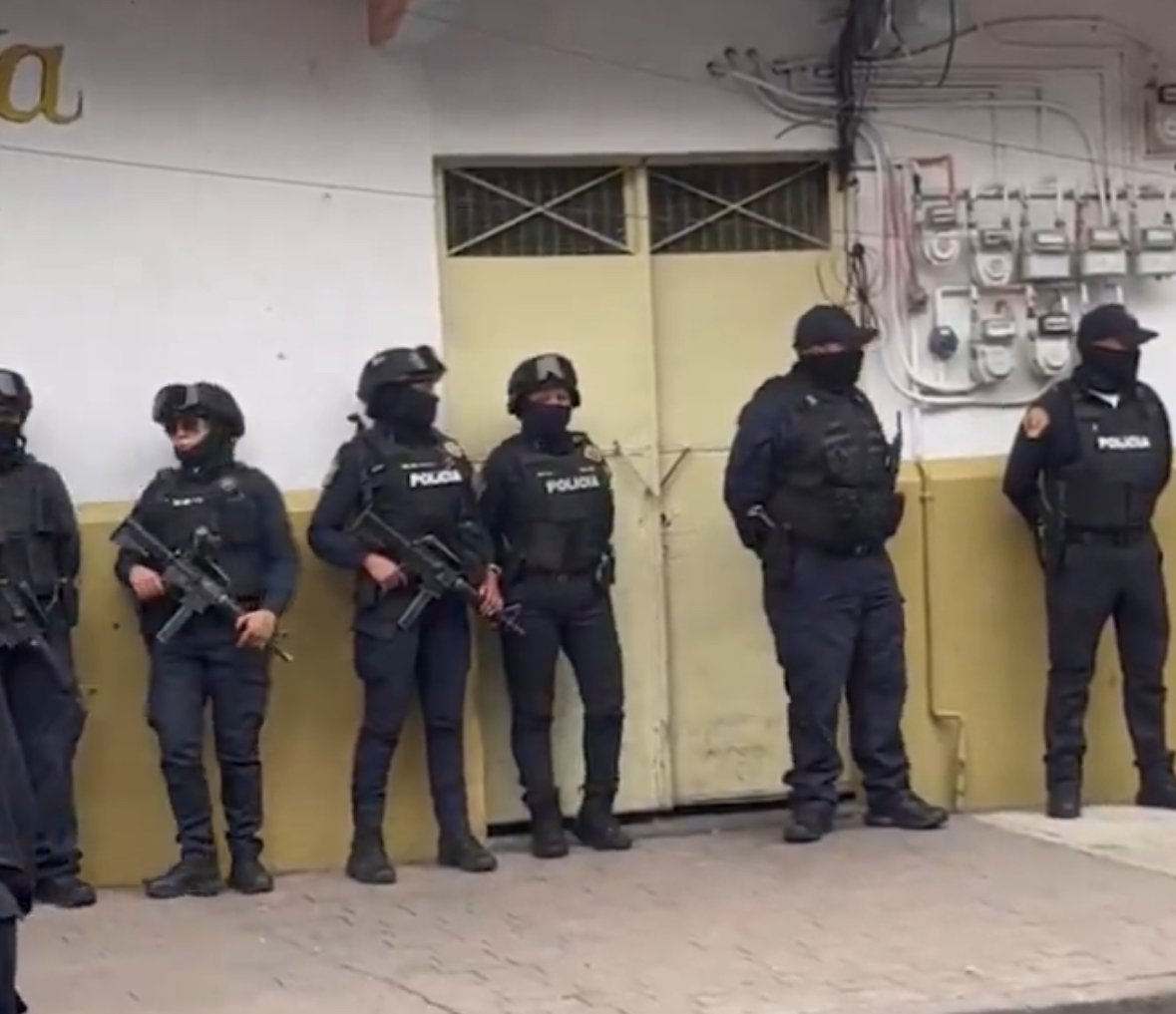 Elementos policiacos resguardan la vecindad ubicada en la colonia Anáhuac, donde se realizó la detención y el aseguramiento de los estupefacientes, ya que el lugar podría ser un centro de elaboración de dichas sustancias.
