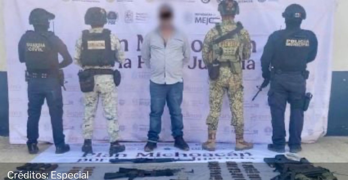 Detienen a Noé “N” junto a un arsenal en Michoacán