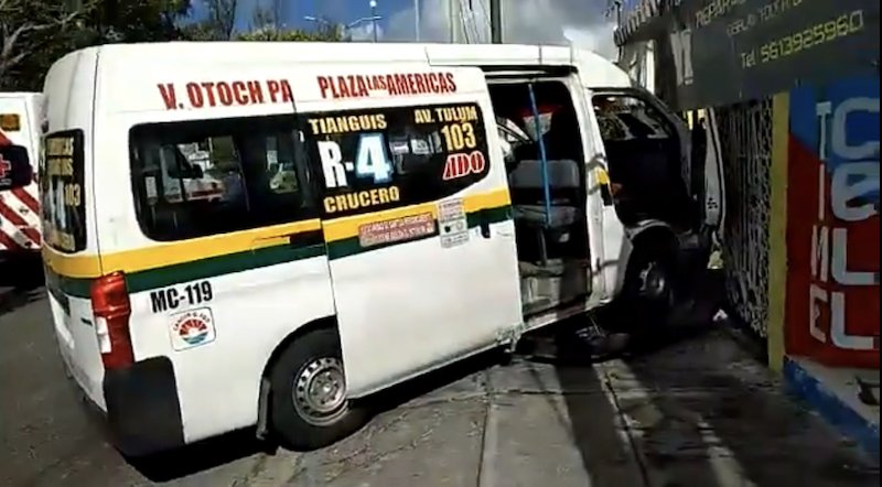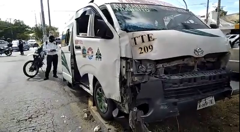 Diez lesionados deja el choque entre dos combis de transporte público en Cancún
