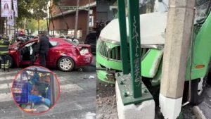 Un saldo de diez personas lesionadas fue lo que dejó un fuerte choque entre un auto particular u un camión de pasajeros que circulaban sobre el Eje 2 Poniente Monterrey, y en el cruce con la calle de Durango en la alcaldía Cuauhtémoc de la Ciudad de México.