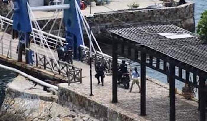 Un enfrentamiento con armas de fuego que se registró la tarde hoy en el punte que divida a las playas de Caleta y Caletilla del Puerto de Acapulco, dejó un saldo de cuatro persona detenidas, dos de ellas heridas, mismas que minutos después fueron auxiliadas por paramédicos para su atención médica