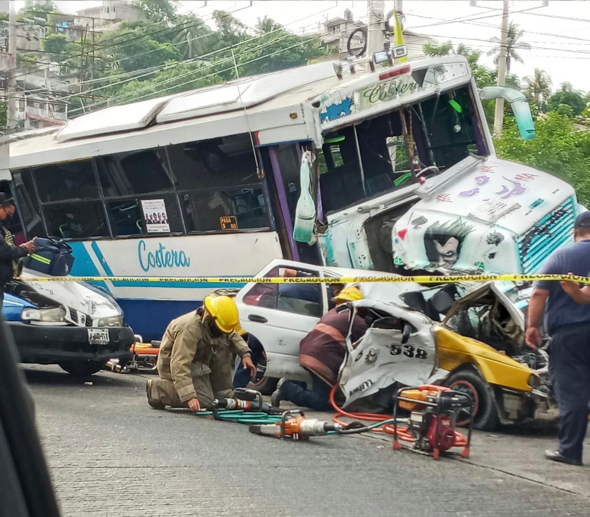 Hoy miércoles 28 de junio por la mañana, un sujeto desconocido abordó un camión urbano que cubre la ruta Costera-Renacimiento en el Puerto de Acapulco y a la altura del punto conocido como la Llave de Agua se levantó de su asiento y le disparo en dos ocasiones al chofer de la unidad, por lo que el transporte público se salió de control saltándose el camellón central y al caer en el sentido contrario al que iba impactó de lleno con dos taxis, uno Amarillo de los conocidos como Colectivos con la ruta de Cd. Renacimiento y otro azul con blanco, dejando como saldo varias personas heridas. Hasta el momento de la publicación las autoridades no habían emitido un parte oficial del percance.