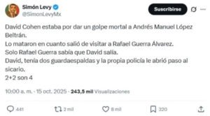 El empresario Simón Levy difundió un mensaje en X (antes Twitter) en el que vinculó presuntamente a Andrés Manuel López Beltrán, hijo del expresidente de México, con el homicidio del reconocido abogado David Cohen, asesinado de una balazo en la cabeza y otro en la pierna cuando salía de los juzgados en la Ciudad de México.