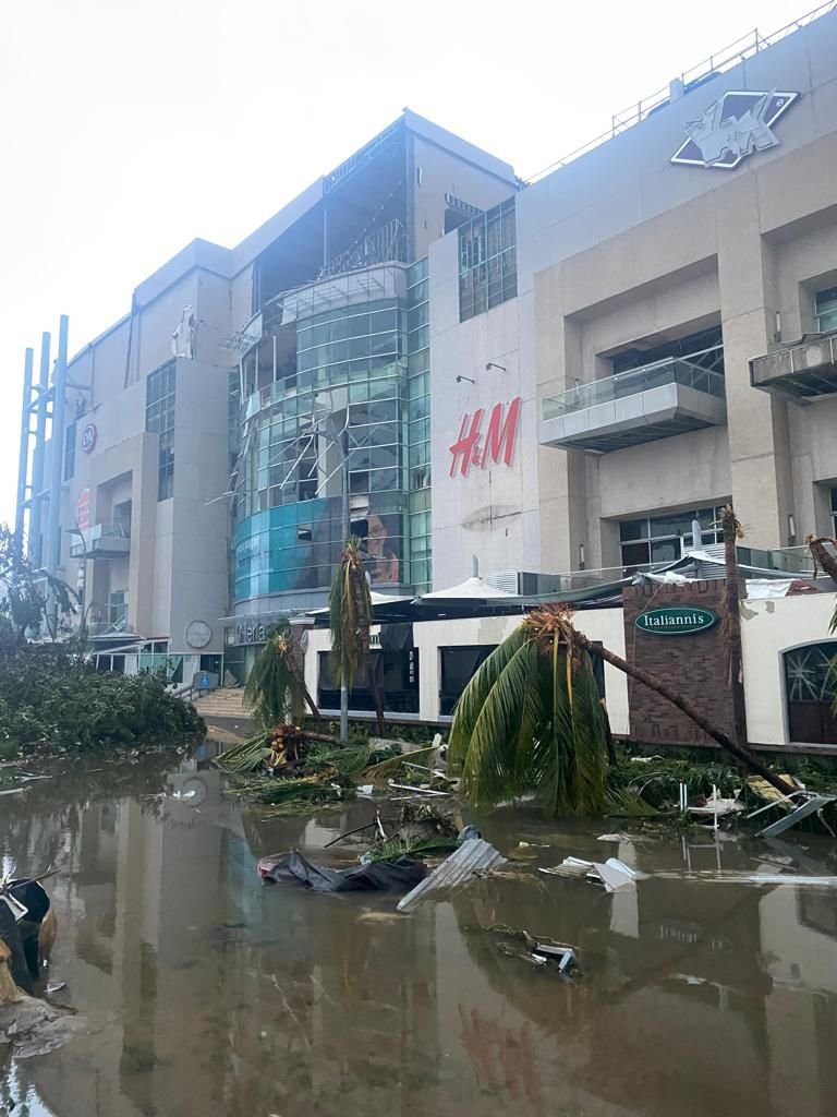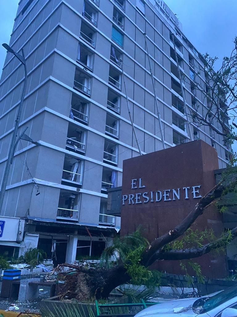 En las imágenes se pueden observar habitaciones de hotel destruidas, espacios totalmente inundados y hasta a un grupo de personas que viajaban al interior de un autobús, quienes tuvieron que resguardarse debido a que la fuerza del aire reventó los cristales de la unidad.
