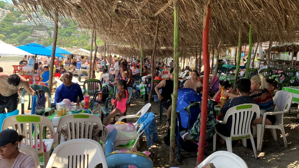 Prestadores de servicios turísticos de Playa Revolcadero del Puerto de Acapulco desafían por completo las indicaciones del Gobierno del Estado de Guerrero y prestan sus servicios sin respetar los protocolos de prevención de contagios de Covid-19, atendiendo sin ninguna restricción, ya que no respetan el aforo del 50% que está indicado por las autoridades sanitarias y no piden el uso de cubre bocas a sus clientes, además de que permiten que todos los turistas estén muy pegados entre ellos.