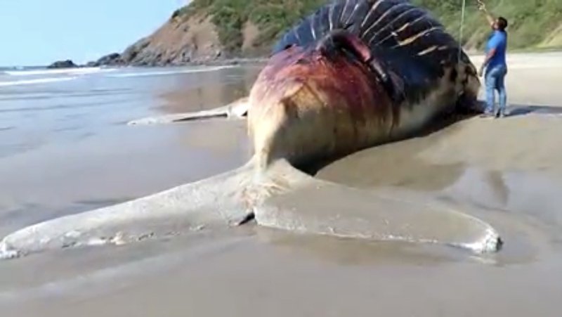 Pobladores del lugar, encontraron muerta una ballena de la especia Jorobada sobre la franja de arena de la playa conocida como Playa Solitaria, que se localiza en el municipio del poblado de Petatlán, en el Estado de Guerrero, aproximadamente a 30 minutos del Aeropuerto Internacional del puerto de Ixtapa-Zihuatanejo.