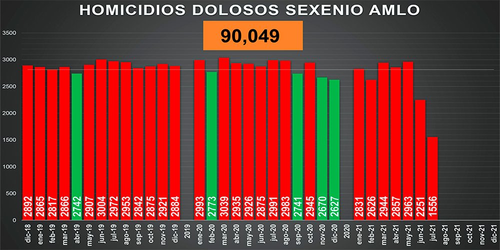 De acuerdo a lo que se planteo en esa investigación, el actual gobierno esta enfilado a superar las muertes por homicidios dolosos que se documentaron durante los gobiernos de Felipe Calderón, con 120 mil, 463 y el de Enrique Peña Nieto, que registro 156 mil 66 Homicidios Dolosos, lo que podría convertirlo en el sexenio más violento de la historia moderna de México.