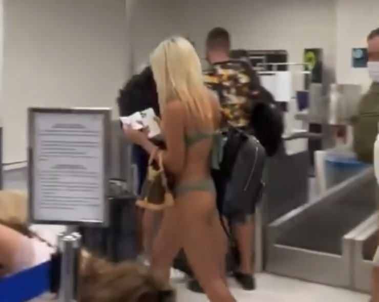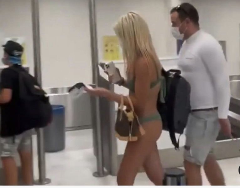 Gran sorpresa causó en un aeropuerto de los Estados Unidos una joven que abordó un avión solo vistiendo un bikini color verde y acompañada por un joven que vestía bermudas, ello ante el asombro de todas las personas que abordaron el mismo avión, sin que hasta el monte se tenga el dato de cual ciudad es en la que sucedió, aunque de acuerdo a los reglamentos de algunas aerolíneas estadounidenses, es permitido viajar de esa forma.