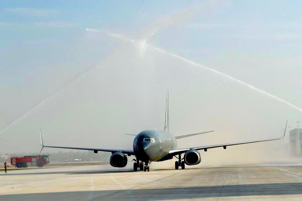 Inaugura AMLO la primera pista del aeropuerto de Santa Lucía al aterrizar en avión militar
