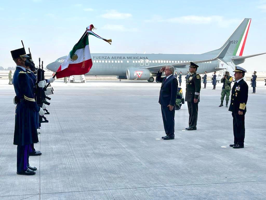 Tras abordar el avión Boeing 737-800 de la Fuerza Aérea Mexicana en el Aeropuerto Internacional Benito Juárez, AMLO voló durante 15 minutos y aterrizó poco antes de las 10:00 horas en la base de Santa Lucía
