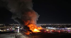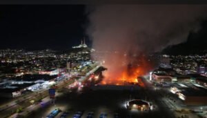 La madrugada de este jueves 12 de febrero, un fuerte incendio consumió por completo la tienda Sam’s Club, ubicado en Hermosillo, Sonora.