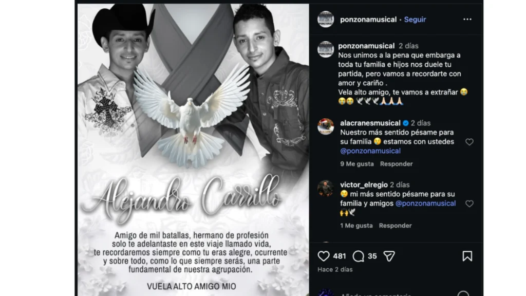 La muerte que enluta al regional mexicano corresponde a Alejandro Carrillo, baterista de la agrupación Ponzoña Musical. Carrillo formaba parte fundamental del grupo y era considerado una pieza clave dentro del sonido que los caracterizó a lo largo de los años. El fallecimiento fue confirmado oficialmente el domingo 4 de enero, cuando Ponzoña Musical utilizó sus redes para informar de la triste noticia. La banda compartió una imagen en blanco y negro del músico, acompañada de un mensaje conmovedor.