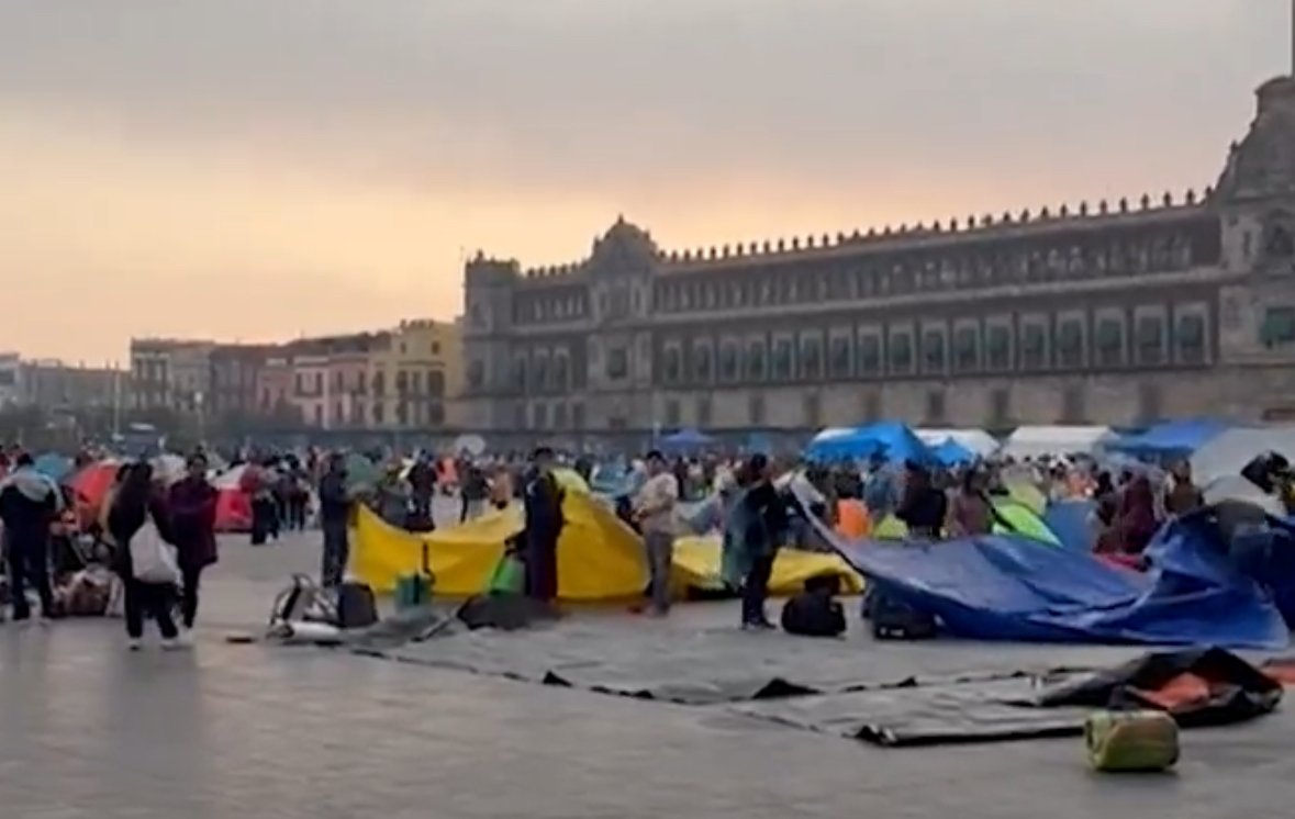 Docentes pertenecientes Coordinadora Nacional de Trabajadores de la Educación (CNTE), iniciaron la instalación de un campamento en el Zócalo de la Ciudad de México, donde iniciarán un paro de 72 horas.