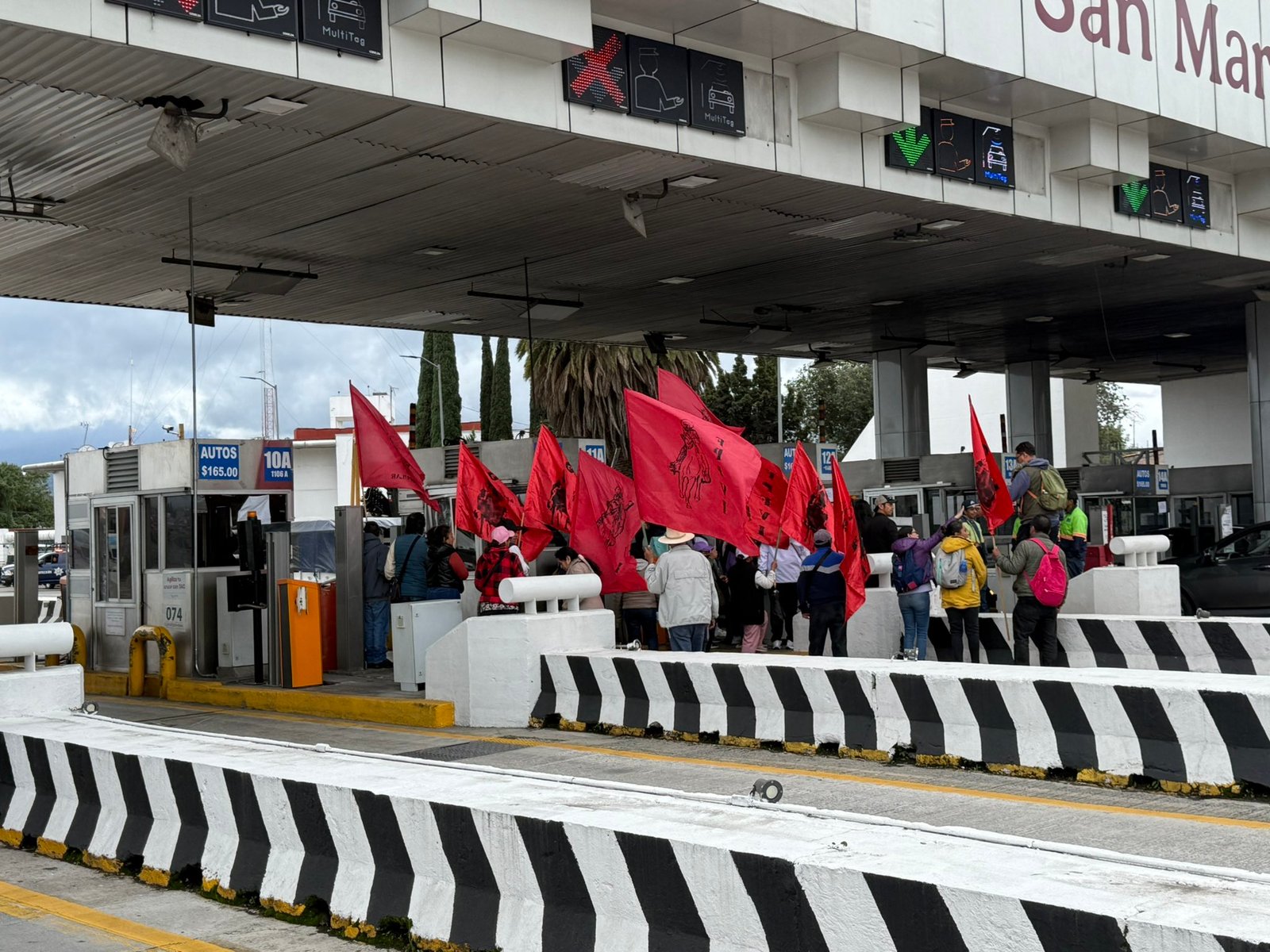 Este vienes, un nutrido grupo de Maestros integrantes de la CNTE tomaron la caseta de peaje de San Marcos de la autopista México-Puebla, levantan las plumas y permiten el paso libre de pago de los vehículos que transitan por esa importante vía.