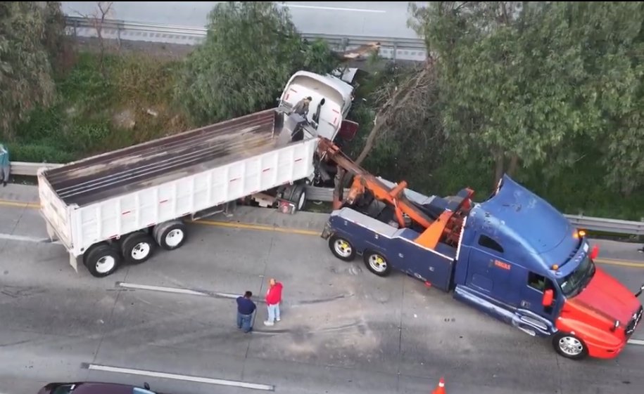 Intento de robo provoca la volcadura de un tráiler en la autopista México-Querétaro