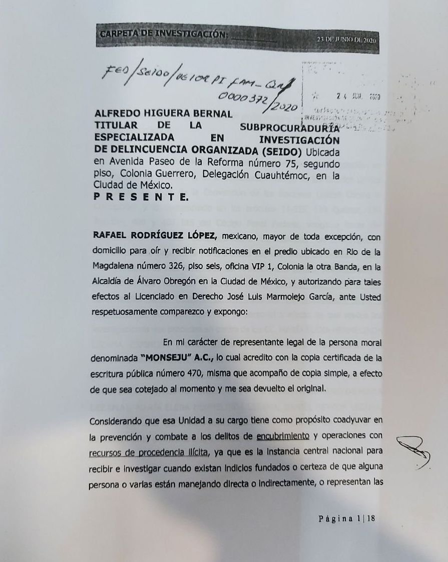Las querellas se presentaron por Flor Tapia Pastrana, Presidenta de la Asociación Opus Magnum, ante la probable comisión del delito de operaciones con recursos de procedencia ilícita.