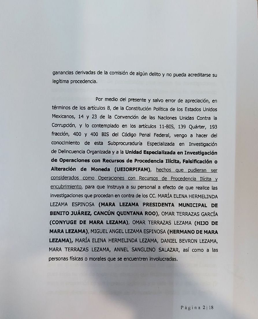 Debido a que en los últimos cinco años, supuestamente se incrementó su riqueza de manera «desproporcionada», la familia de la Presidenta Municipal de Benito Juárez (Cancún), Quintana Roo, María Hermelinda Lezama Espinosa está siendo investigada por la Fiscalía General de la República (FGR) y  la Unidad de Inteligencia Financiera (UIF).