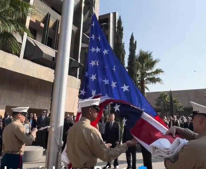 En una ceremonia protocolaria, la mañana de este martes, Ronald Johnson embajador de Estados Unidos en México, encabezó el izamiento de bandera en su nueva sede diplomática de la colonia Irrigación en la alcaldía Miguel Hidalgo de la Ciudad de México.