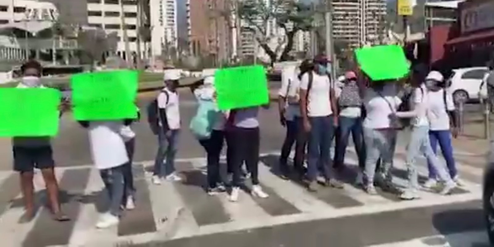 Para exigir les paguen sus sueldos que no les llegan desee hace tres meses, es que un grupo de Jóvenes Construyendo el Futuro están realizando un bloqueo intermitente en el punto donde se unen la avenida Escénica y la Costera Miguel Alemán, en la zona Turística de Acapulco.