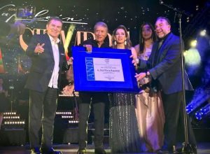 “Nuestro presidente José Elías Moreno, nos dio la encomienda de traerte este premio y decirte que te admiramos, te queremos y reconocemos esta brillante trayectoria que haz tenido, porque  estoy convencido que tus canciones ya son parte la Banda sonora de todo México” señalo Jesús Monárrez.