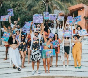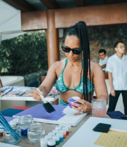 Entre las divertidas actividades que realizaron durante su estancia, además de juegos de mesa, fue el que cada uno de los invitados pintó con acuarelas, carteles de felicitación para Alicia, mismos que mostraron al momento de cantarle las clásicas mañanitas mexicanas.