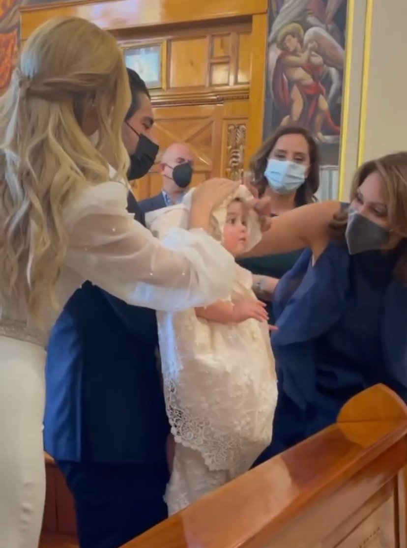 La ceremonia religiosa fue muy emotiva y en todo momento a Carlotta se le vio muy tranquila y atenta a lo que pasaba a su alrededor, mientras que sus papás ponían mucha atención a las palabras del sacerdote que oficio la misa.
