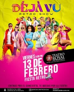 -El viernes 13 en el Teatro Royal Pedregal será la oportunidad para ver el espectáculo que presenta el estupendo grupo DejaVu Retro Show, donde entras por el concierto y te quedas por la fiesta, grandes clásicos de todos los tiempos con medleys y el gustado mash-up con la calidad vocal y musical de un grupo que desde que iniciaron han demostrado que son de lo mejor. Soy fan y por ahí estaremos.
