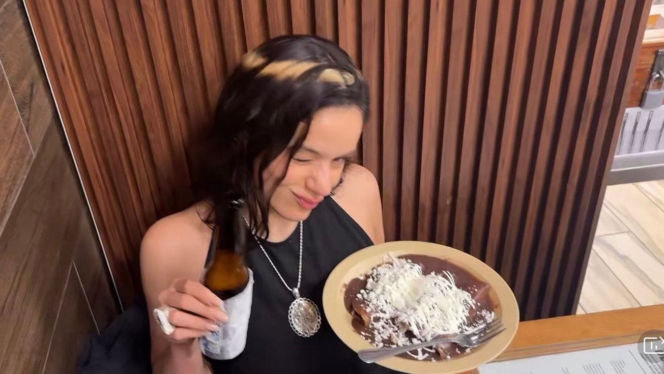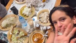 La cantante disfrutó de pozole, agua de horchata, tacos, enfrijoladas y otros platillos típicos del establecimiento.