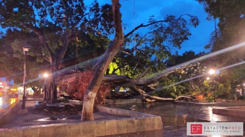 Las fuertes lluvias e intensos vientos que cayeron la tarde-noche de ayer el Oaxaca, derribaron el histórico árbol laurel de 130 años de edad ubicado en el zócalo de la ciudad de Oaxaca.
