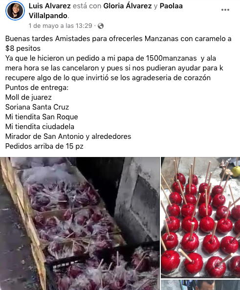 A través de su perfil de Facebook, el joven originario de Monterrey, Nuevo León, relató que su papá se dedica a la venta de manzanas cubiertas de caramelo, por lo que recibió un pedido de grandes cantidades.